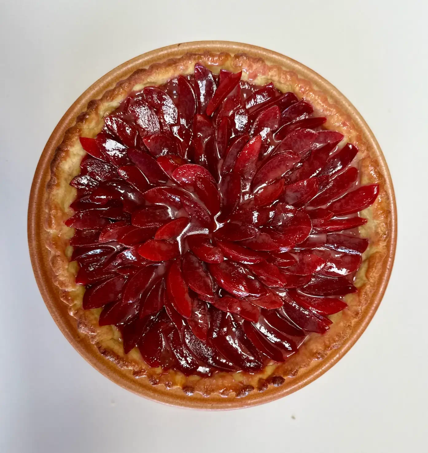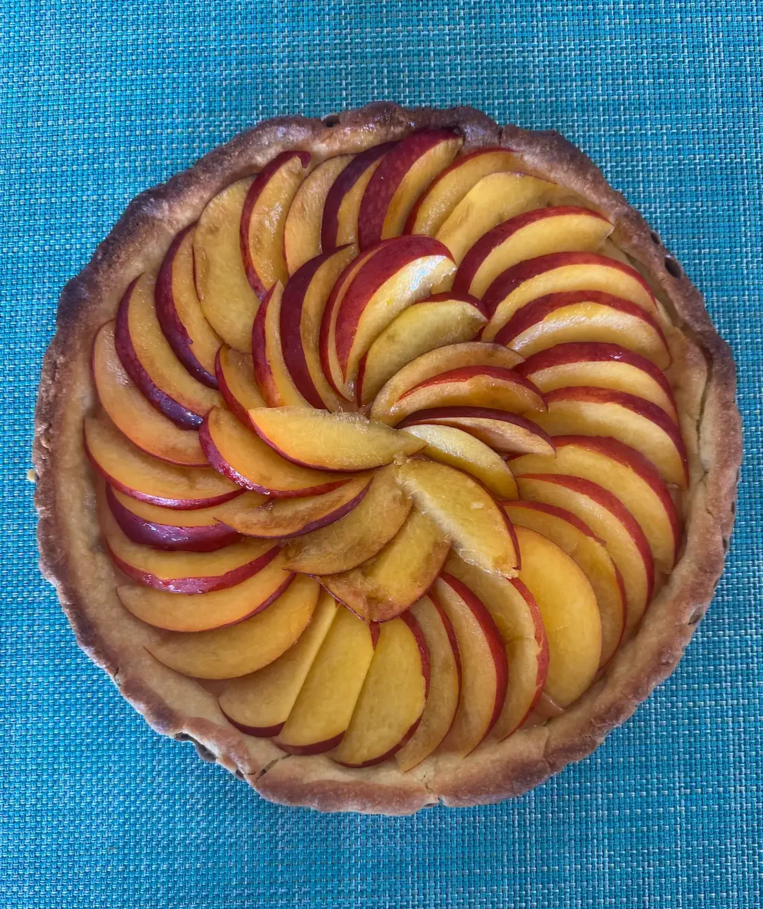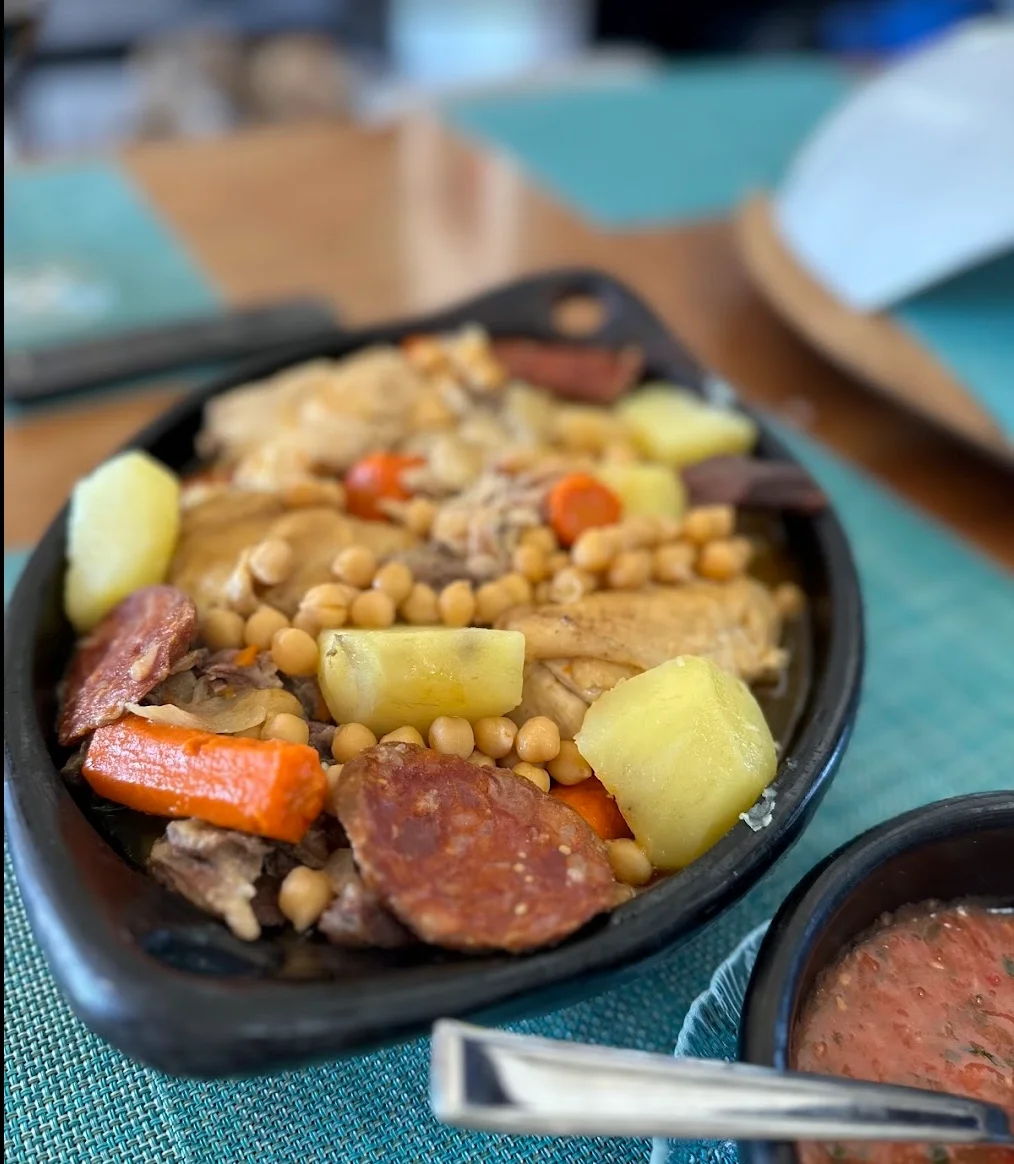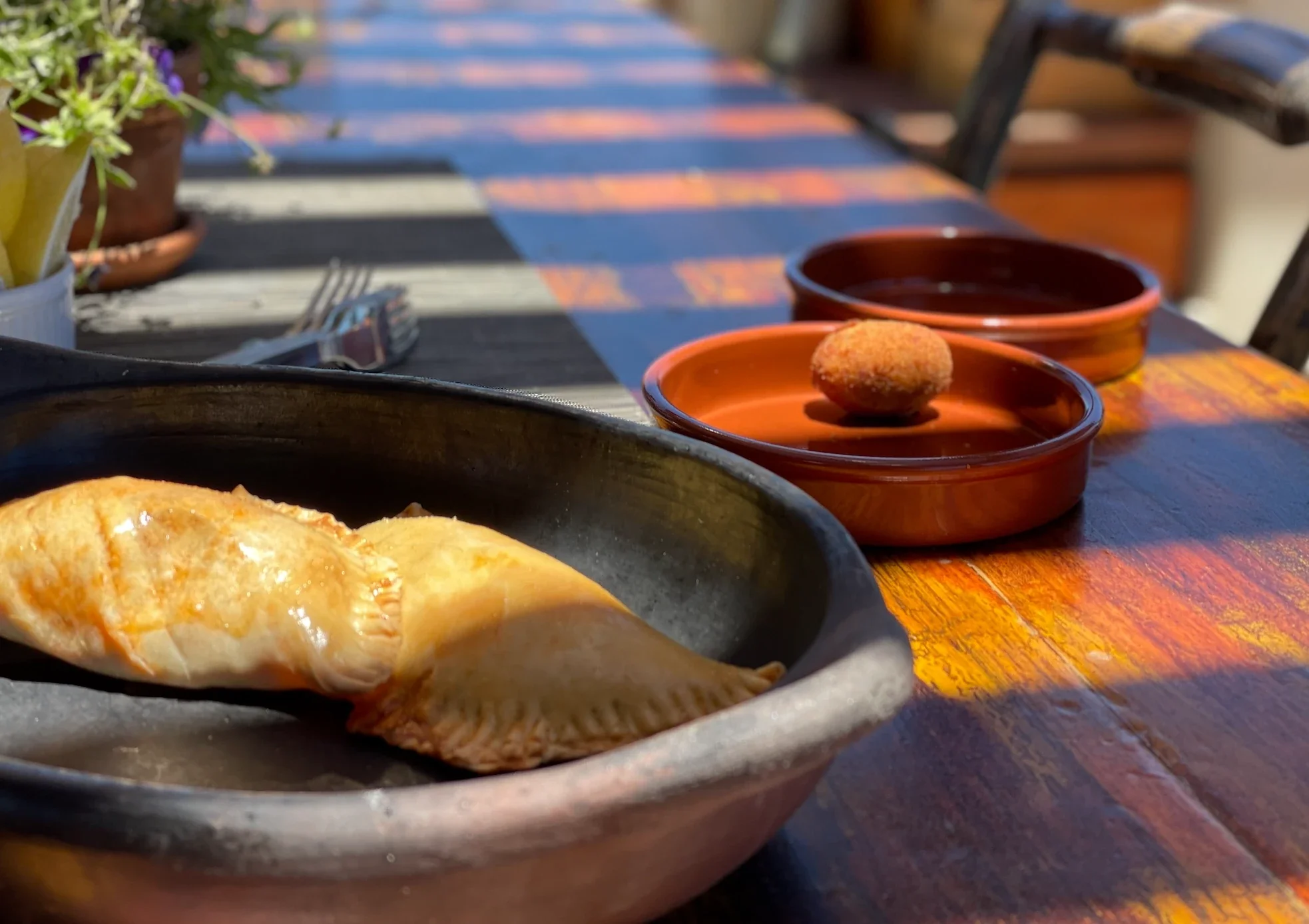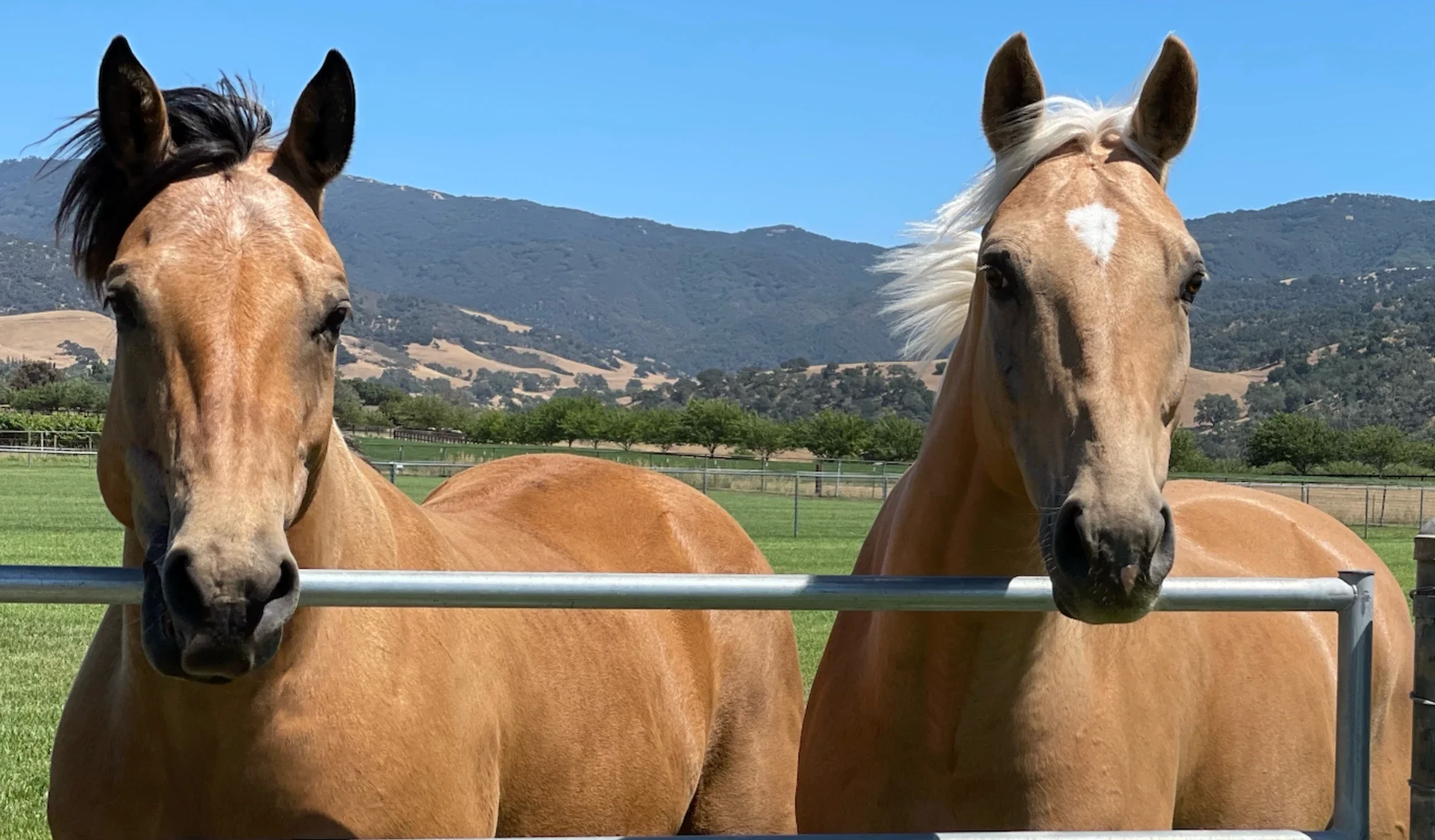 INÉSUENO vineyard pergola outdoor dining area at sunset with a paved walkway, green lawn, bushes, trees, and a wooden pergola structure.